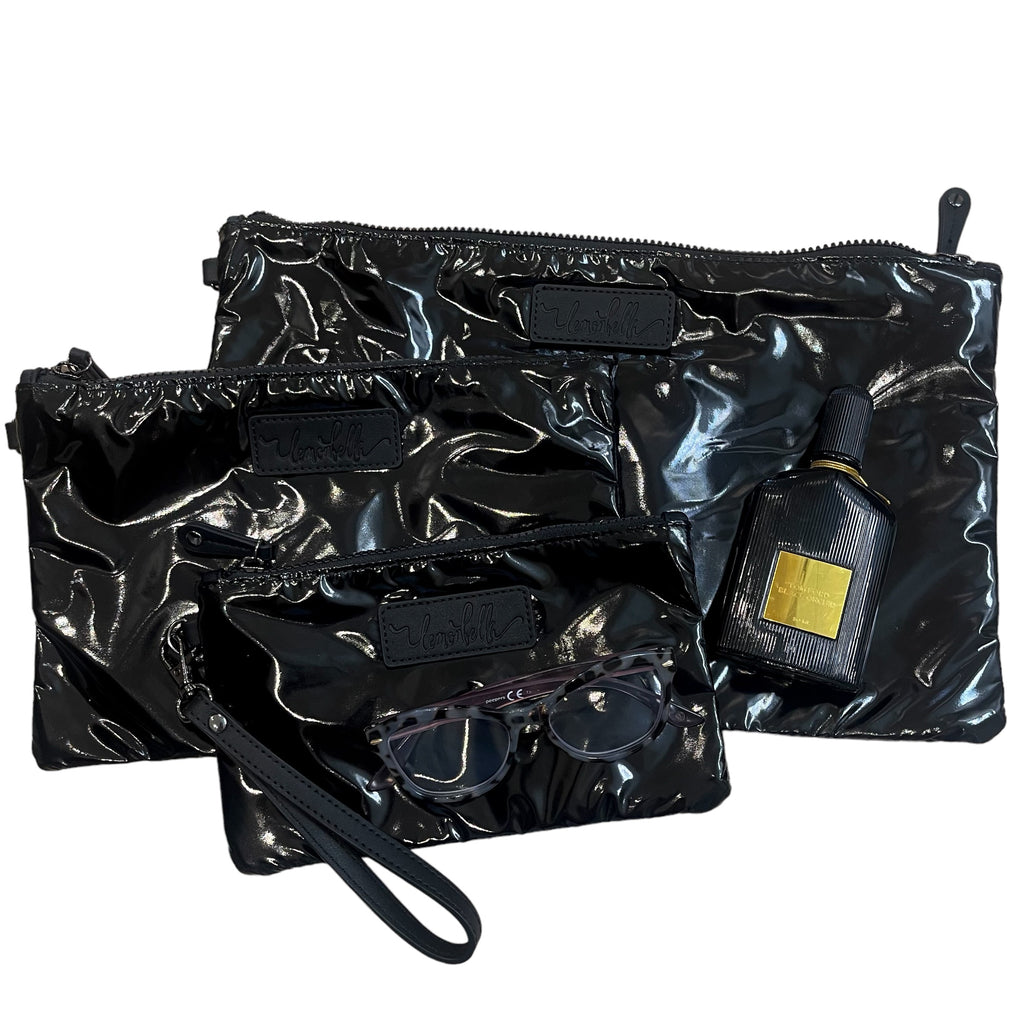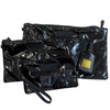 Triple the fun! This trio nylon patent everything pouch set is perfect for anything you can think of! On the go or daily use. Love the look? Wear one as a wristlet, as this trio comes with an attachable strap included!