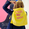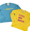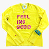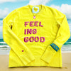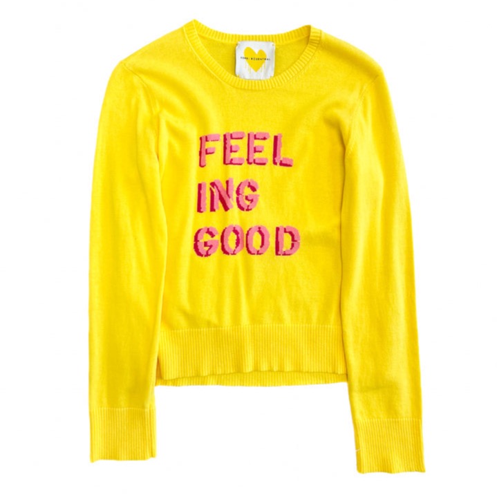 Our Liz sweaters of the season are here. This collector's edition was inspired by Kerri's graphic 'Feeling Good' artwork. Made from 100% cotton, it's the perfect shot of color with a "feeling good" mantra to keep with you!
