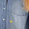 Meet your favorite Mia Shirt in "new" light weight denim. Perfectly worn out and faded in all the right places, with a tiny embroidered heart detail. The well worn hemline of the shirt is aged to perfection making this shirt look like it's been loved for a really long time. Perfect to wear as a shirt or shacket!