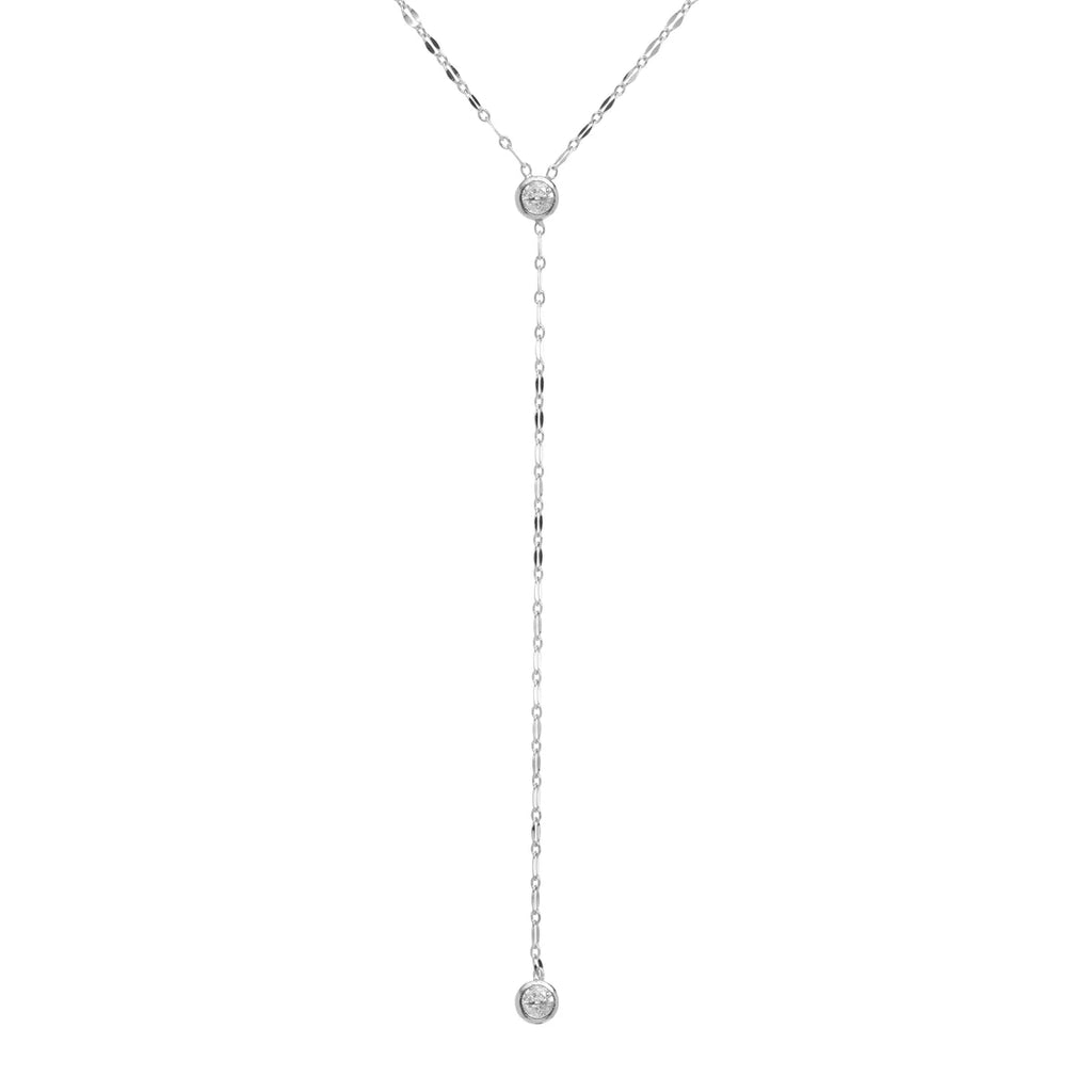 16"+2" Rhodium over sterling silver mirror link chain with bezel-set cz.