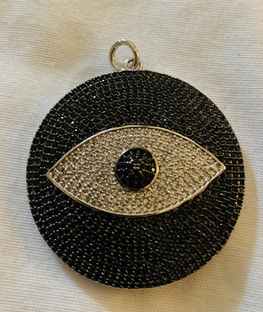 Round Black CZ with Clear CZ with Raised Blue Evil Eye In the Center