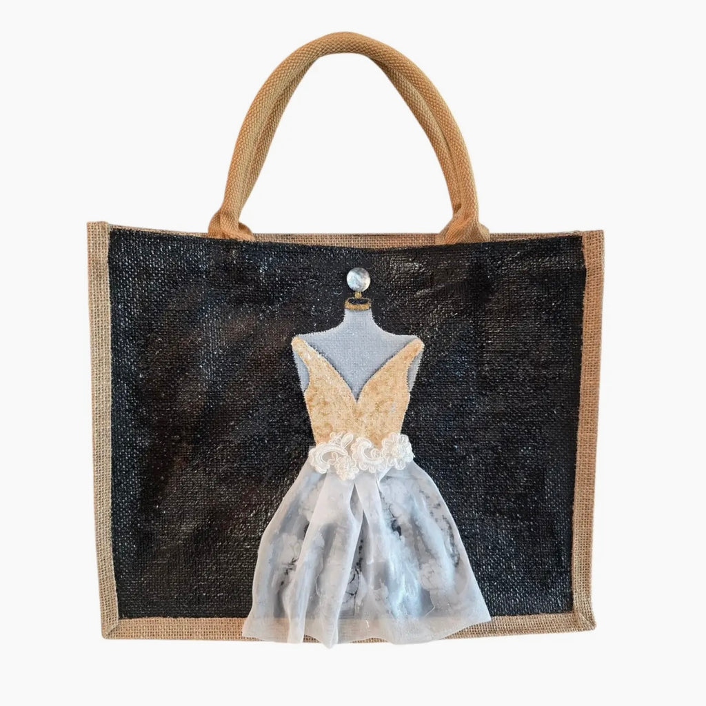 Beautiful hand painted and embellished pink metallic tote bag with white beaded hearts. Hand painted original design. Accented with beads. Protected with resin for shine and lasting beauty. 15.” w x 12” h x 6” d. Bags are made mainly from natural burlap jute fabric and canvas. Durable and can stand on its own. PE film lining. Water-proof and easy to clean with a soft cloth and warm water. Not machine washable. Sturdy handles.Hand painted and embellished