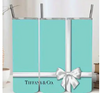This 20-ounce insulated tumbler features a signature aqua color and white bow design! Slide closure; includes stainless straw and cleaning brush.