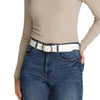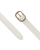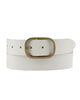 Experience a luxurious upgrade to the classic leather belt with Marin. This premium leather belt boasts a soft and supple texture that contours perfectly to your waistline, providing both comfort and style. The bright gold tone of the statement buckle adds a necessary touch of statement to even the simplest of outfits. Simply slide it through your belt loops and let Marin's lavish flair do the talking. This women's leather belt is sure to become a staple in your everyday wardrobe, effortlessly enhancing your style with its elegant and sophisticated design.