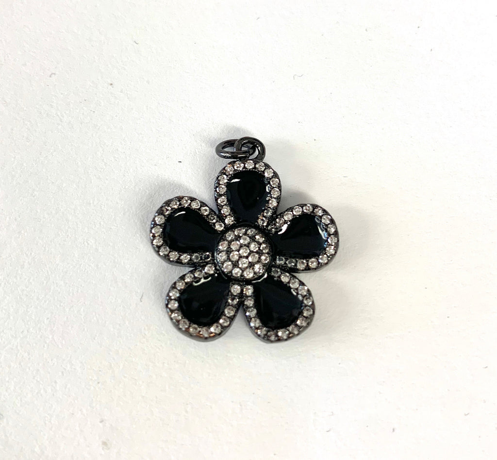 Black Enamel Flower with Pave Charm