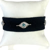 Three 3/4" x 3/8" evil eye charms (sewn on) with clear cz and center light blue cz