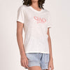 Get in the summer spirit with this slub knit 100% cotton t-shirt featuring a scoop neck and "Ciao Bella" stamped on the front.