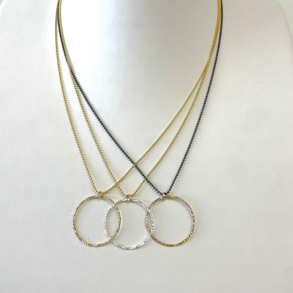 Single laser cut circle on dainty sterling silver ball chain; 16”