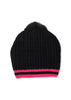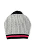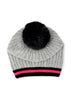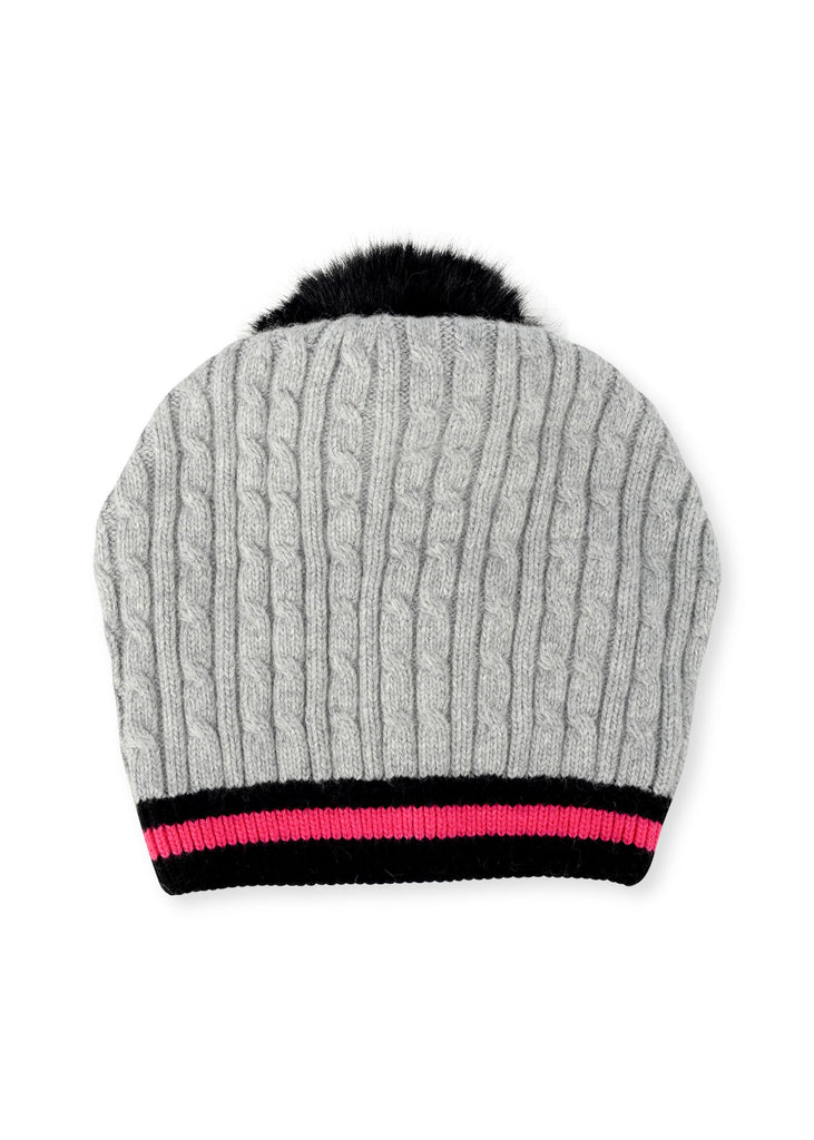 Crafted from a refined wool and acrylic blend, this slouchy cable knit beanie delivers both warmth and understated elegance. The detachable faux fur pom adds versatile styling—wear it for a polished finish or remove it for a streamlined look. Choose from four sophisticated colorways: The Rave in black with black and pink striping, Crosstown in grey with coordinating accents, Midnight in black with black and white detailing, or Cloud in soft grey with subtle white stripes. A timeless layering piece for any season.