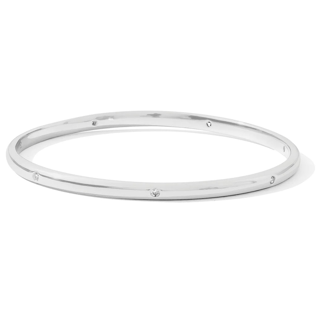 Delicately adorned with tiny sparkling cubic zirconia crystals, the slender design of this bangle bracelet exudes sophistication and elegance. A great addition to your wrist stack!