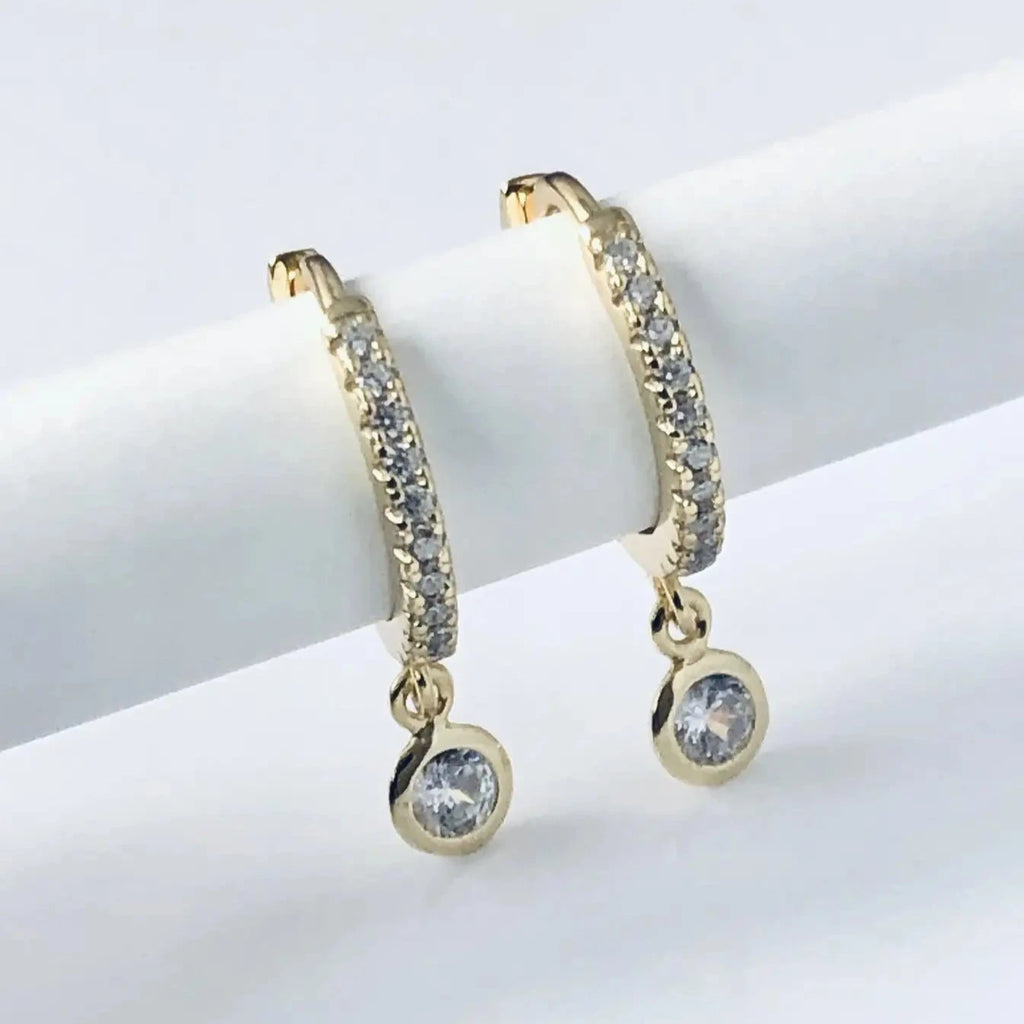 Gold plated or sterling silver huggie with cubic zirconia inlay and cz circle drop