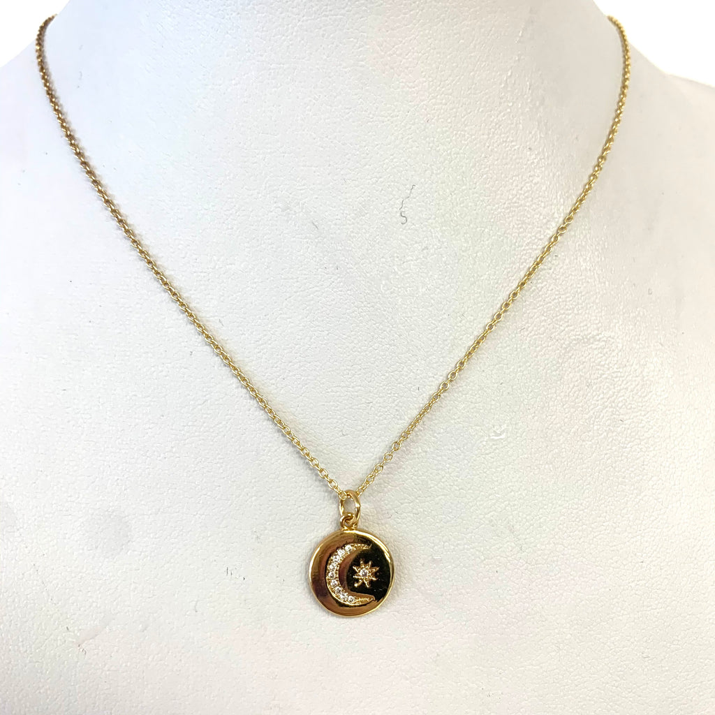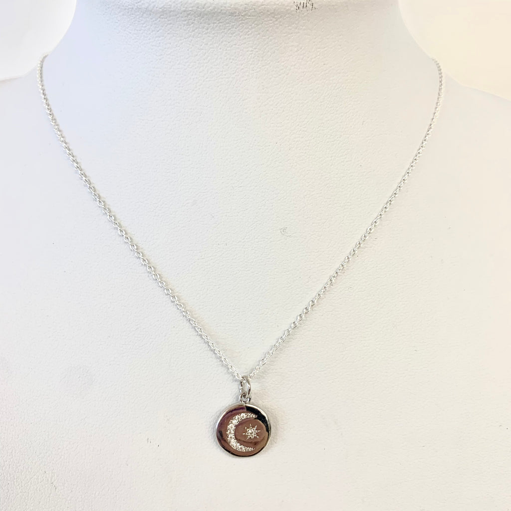 CZ Moon And Star Disc Charm
