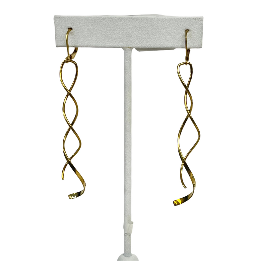 Twirl with delight! Hammered golden coils twist around one another from simple huggie hoop ear wires. This earring that is both fun and interesting.