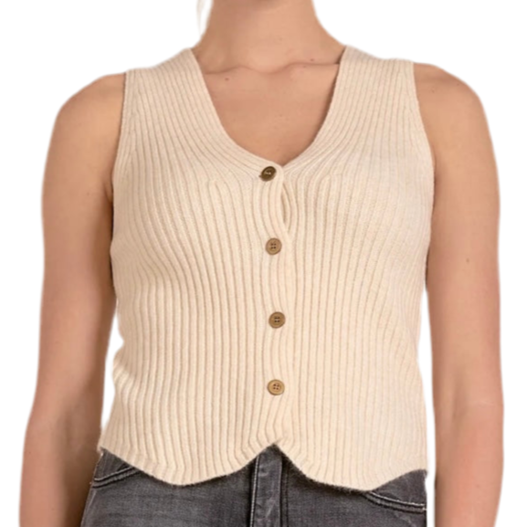 knit tank top button down sweater vest is made from stretchy ribbed knit material