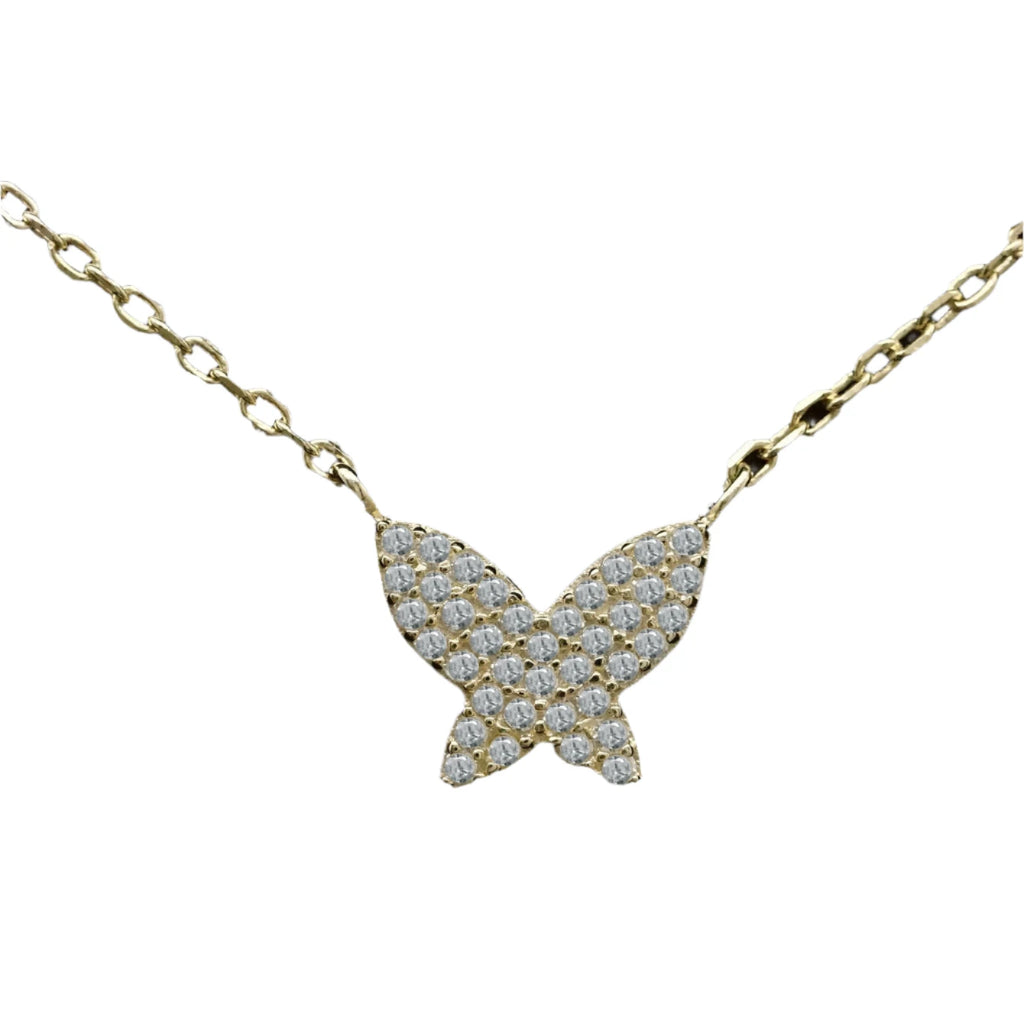 This necklace features a stationary 1/2" W pave butterfly charm on a delicate chain.