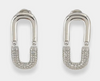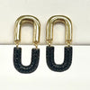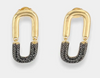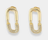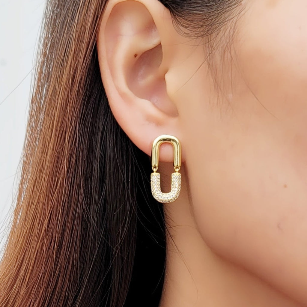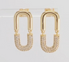 18k gold plated oval push back earrings with dangling bottom half accented with cubic zirconia in white, black, pink, turquoise, or green.