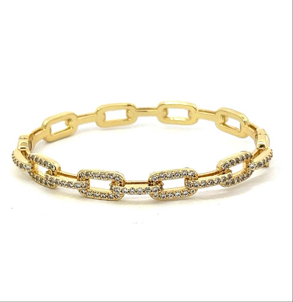 Beautiful Sienna cuff bracelet made out of Stainless Steel with 14-Karat Gold plating. Decorated with clear cubic zirconia.