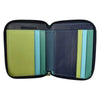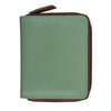 Smooth leather wallet with zip around closure RFID blocking lining Currency pocket Seven credit card slots Back zip pocket