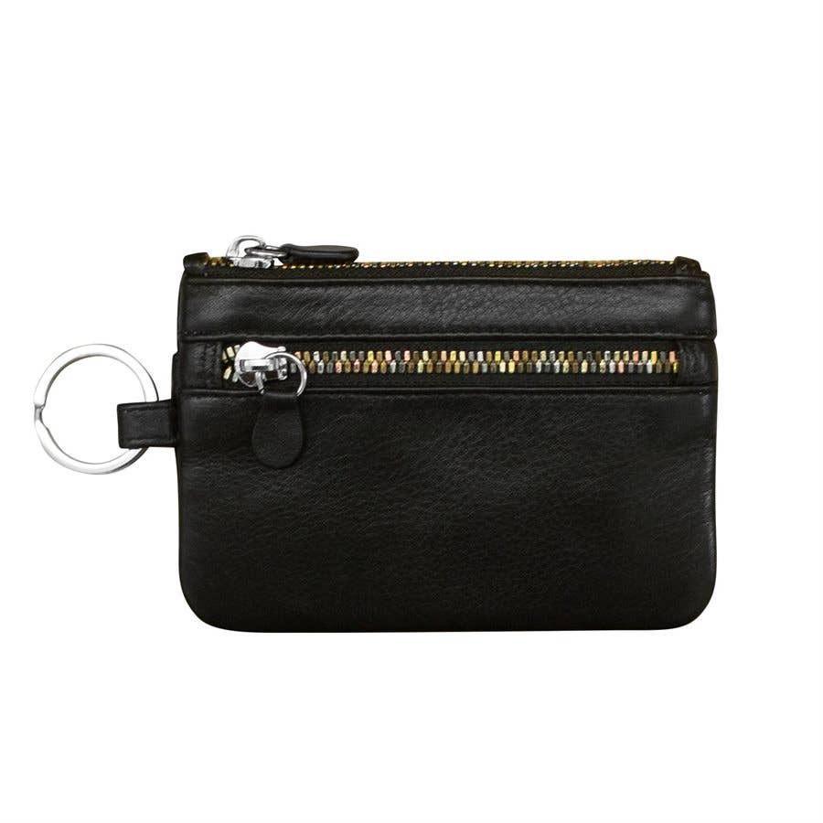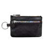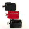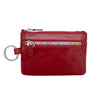 Leather coin purse with multi-color zipper and RFID blocking lining. Exterior - key ring, zip pocket, and ID window. Dimensions: 5 x 3.5 in.
