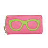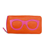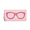 The ili New York Leather Eyeglass Case with Frame Graphic is a stylish and functional accessory designed to protect your eyewear. Crafted from smooth genuine leather, it features a playful eyeglass frame graphic on the front, adding a touch of personality. The case measures 7.5" x 3.75" x 0.5", providing ample space for most eyeglasses or sunglasses. It includes a secure zip closure and a back zip pocket for additional storage. Notably, this case offers RFID-blocking technology to safeguard your cards from electronic theft. Available in various vibrant color combinations, it's both a practical and fashionable choice for everyday use or travel