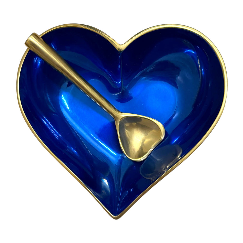 Gold Trim Heart Dishes With Gold Heart Spoon