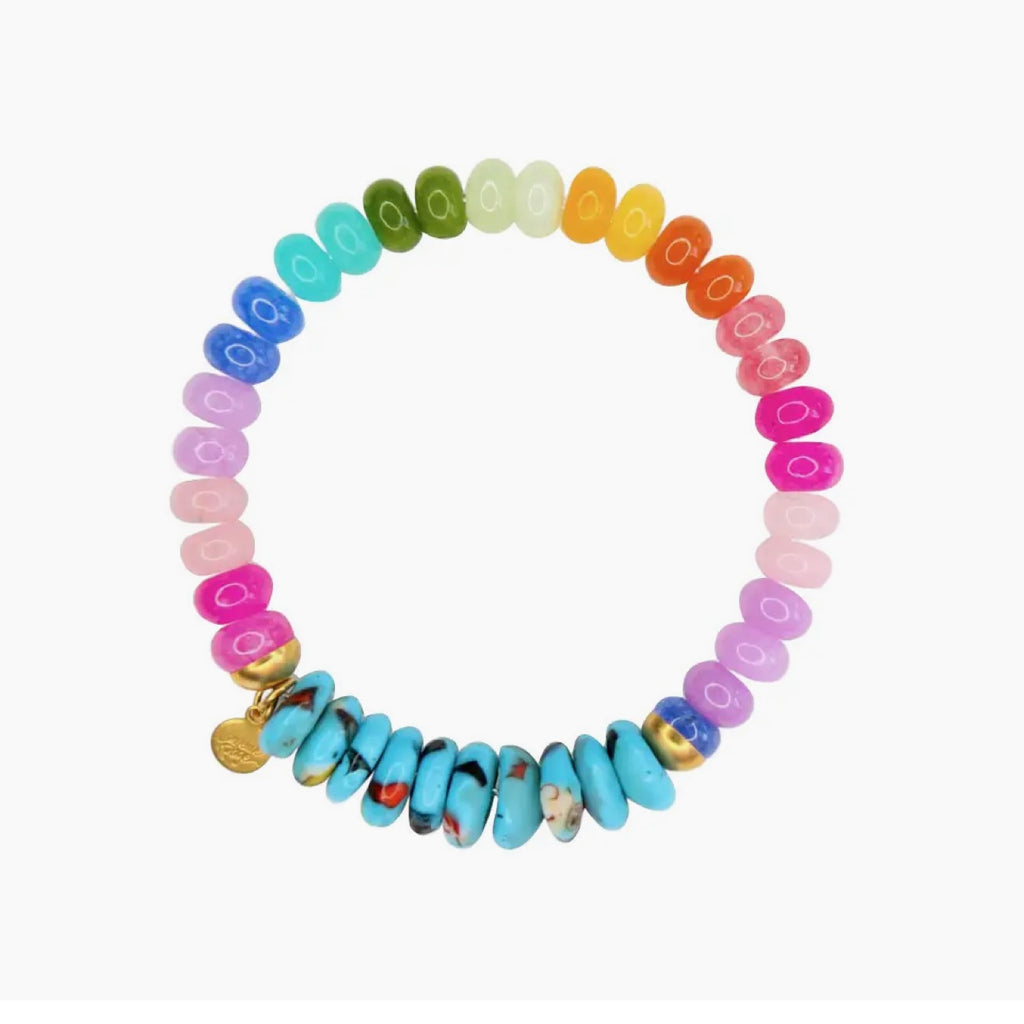 Combination of bold jade beads and multi-colored African accents create a cheerful eye catching design
