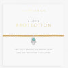 These bracelets feature a stretch gold-tone plated beaded design that ensures a comfortable fit on any wrist. The "Intuition" style is crowned with an evil eye charm, as a sign of protection and intuition; the 'Protection' style featuers a lovely gold-tone plated hamsa hand charm, complete with a turquoise gemstone, as a sign of protection.