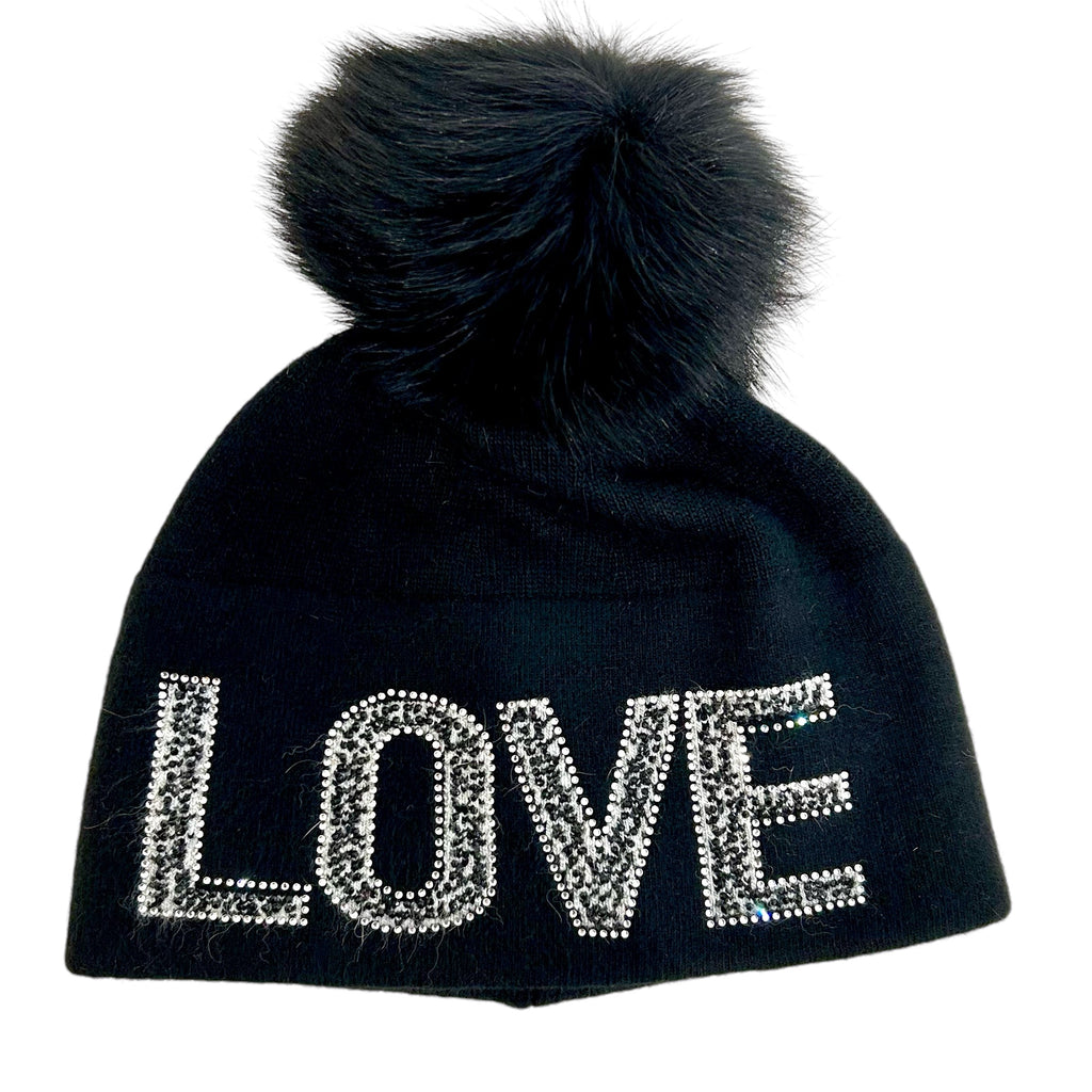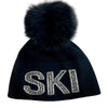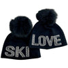 Love And Ski Beanies With Crystals And Fox Pom