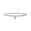 Sami's Tiny Cross Bracelet is made with 3mm beads, they are oh so tiny. The cross sits nicely on these beads. The bracelet measures 6.85" and is made with elastic.