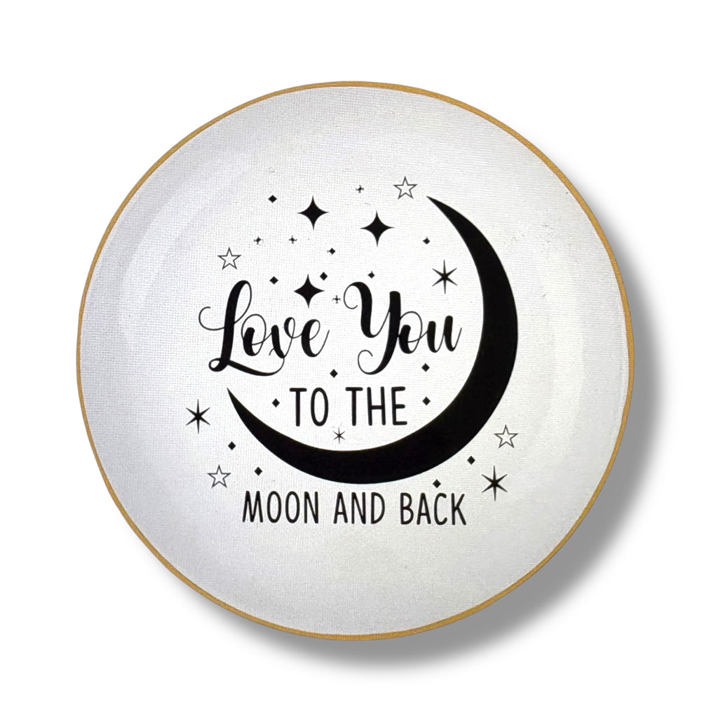 Decorative dish with stars and moon... Love You to the moon and back on the plate.
