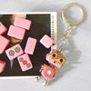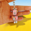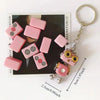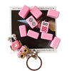 Cute Pink or white Lucky Mahjong Keychain with Acrylic Steampunk Design. Handmade
