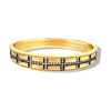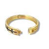 This matte gold 3/8" wide bangle bracelet features clear cz set in onyx design on front.