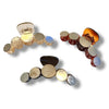 Etched goldtone metal circles adhered to a strong plastic clip