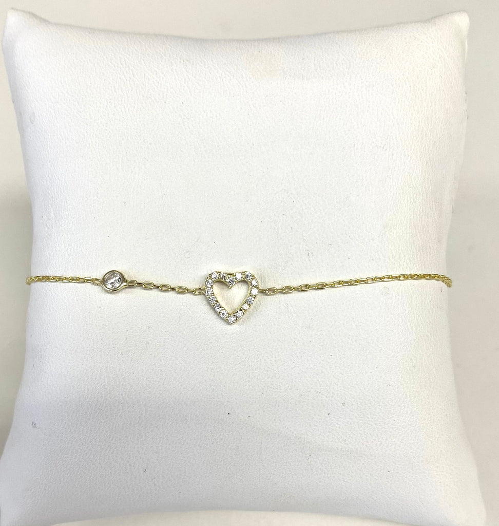 Open Cz Heart With CZ Bracelet