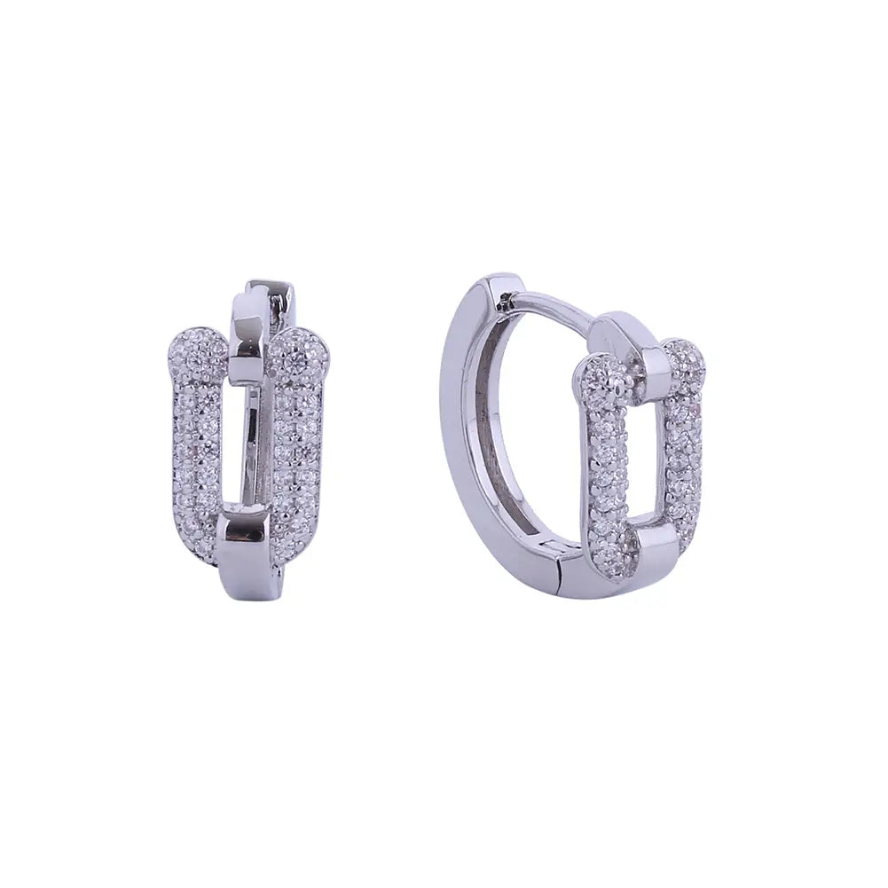 These huggie earrings feature a cz pave U-shaped design on the front. Available in gold or silver.