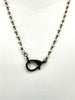 The classy necklace is created from a pearl wire wrapped chain that has a black CZ lobster claw closure which connects the CZ cream enamel heart charm to the chain.