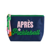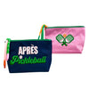 Après Pickleball Paddles: This navy pouch features playful embroidery with "Après Pickleball" in pastel and bright tones, complete with a tassel detail that adds a dash of flair. Perfectly sized to carry your essentials—from sunscreen to snacks—this pouch will effortlessly transition from court to coffee break. Lightweight, compact, and undeniably chic, it's a must-have for every pickleball fan.