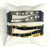 Rebel rectangular bracelet with baguette crystal edge opening.