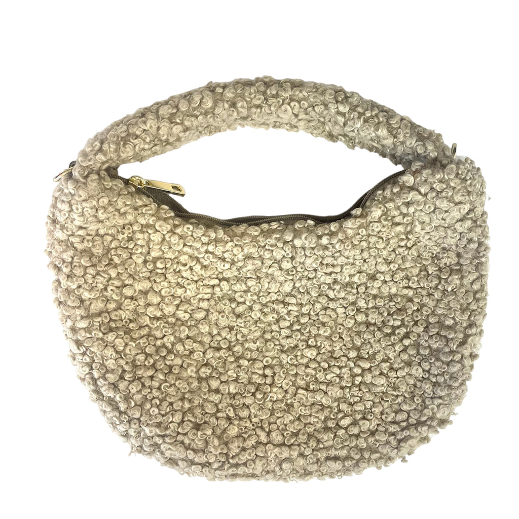 Elegant genuine sherpa handbag with zip closure. Large open space to fit all your needs.