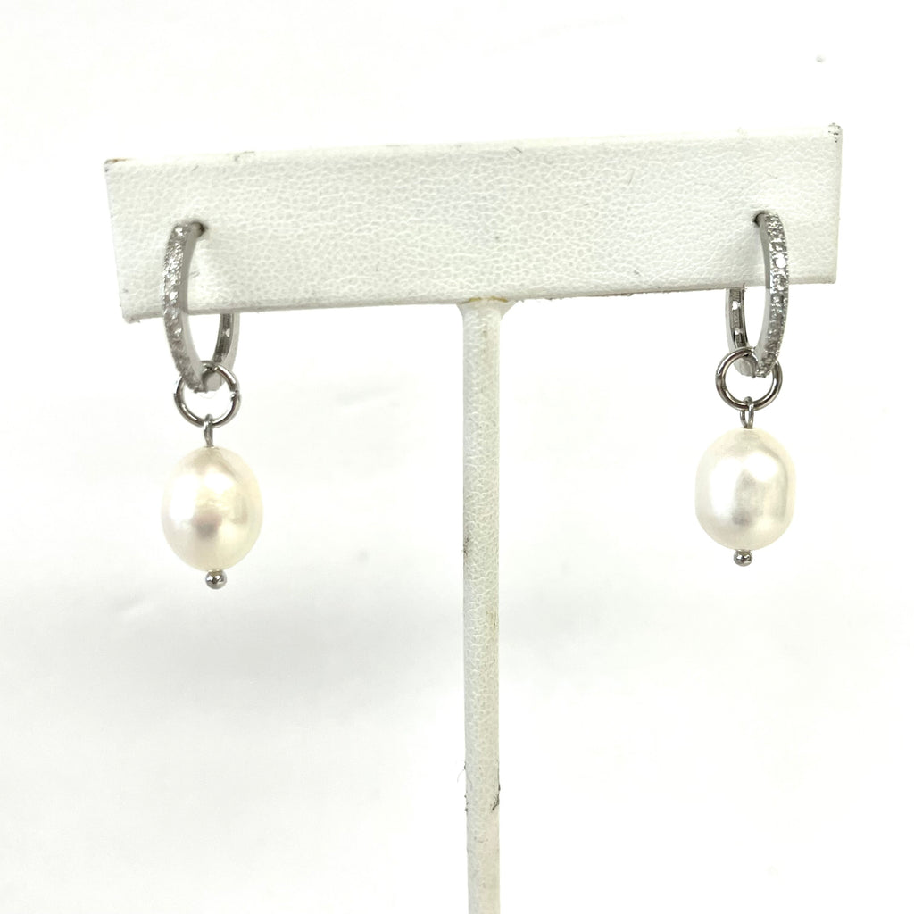 Two looks in one! Wear the 1/2" diameter silver huggies adorned with cz's alone or add the 5/8" oval pearl (3/4" drop) for a completely different look!
