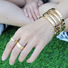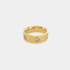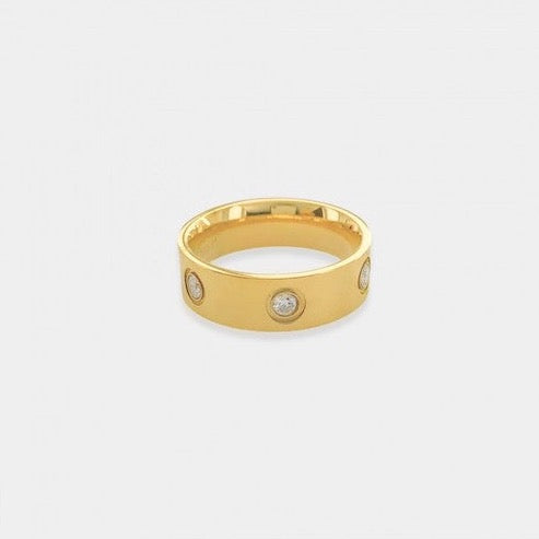 Stainless steel ring with six flushed cubic zirconia studs all around.