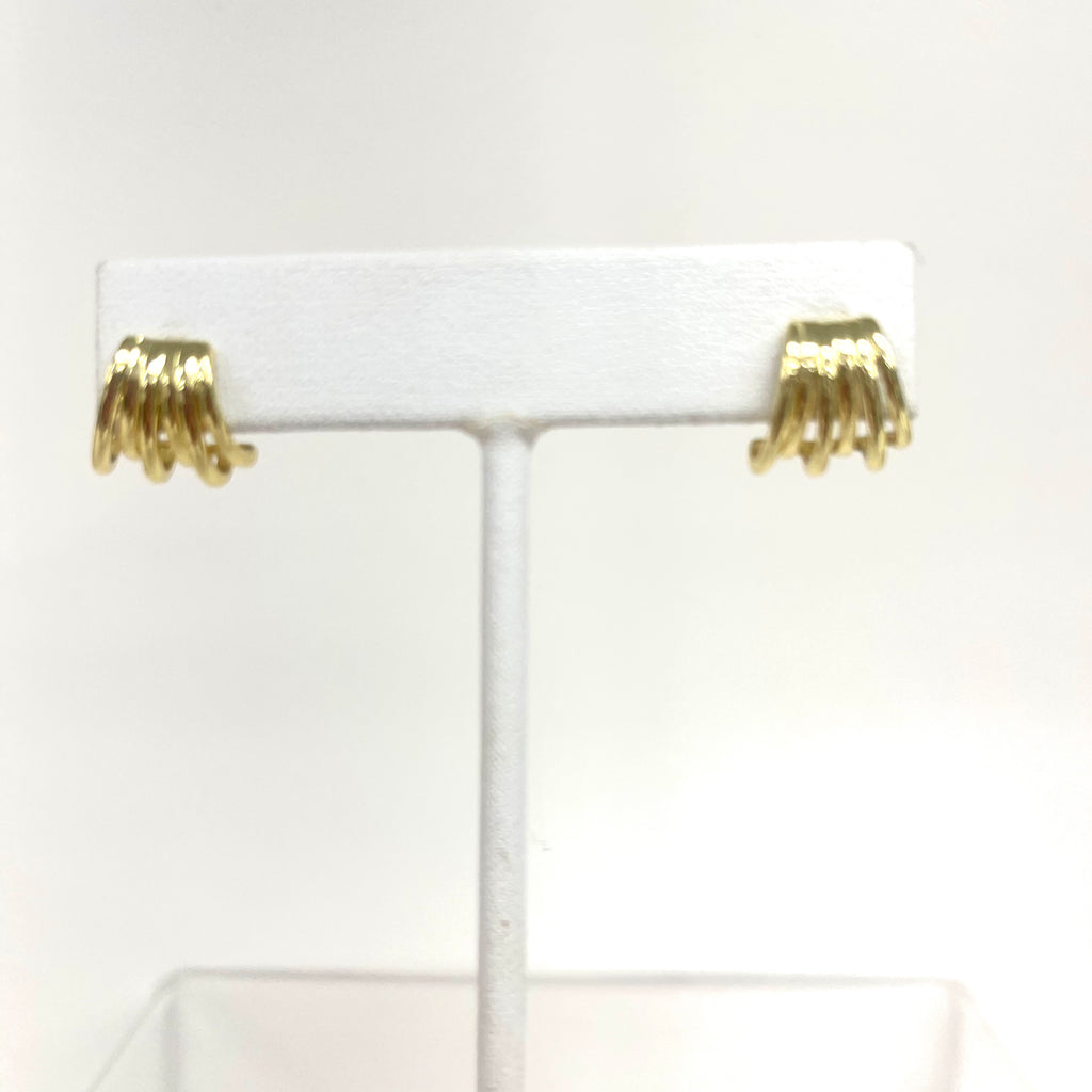 These cute tiny gold hoops have six little hoops gathered together. .5" wide.