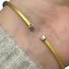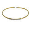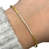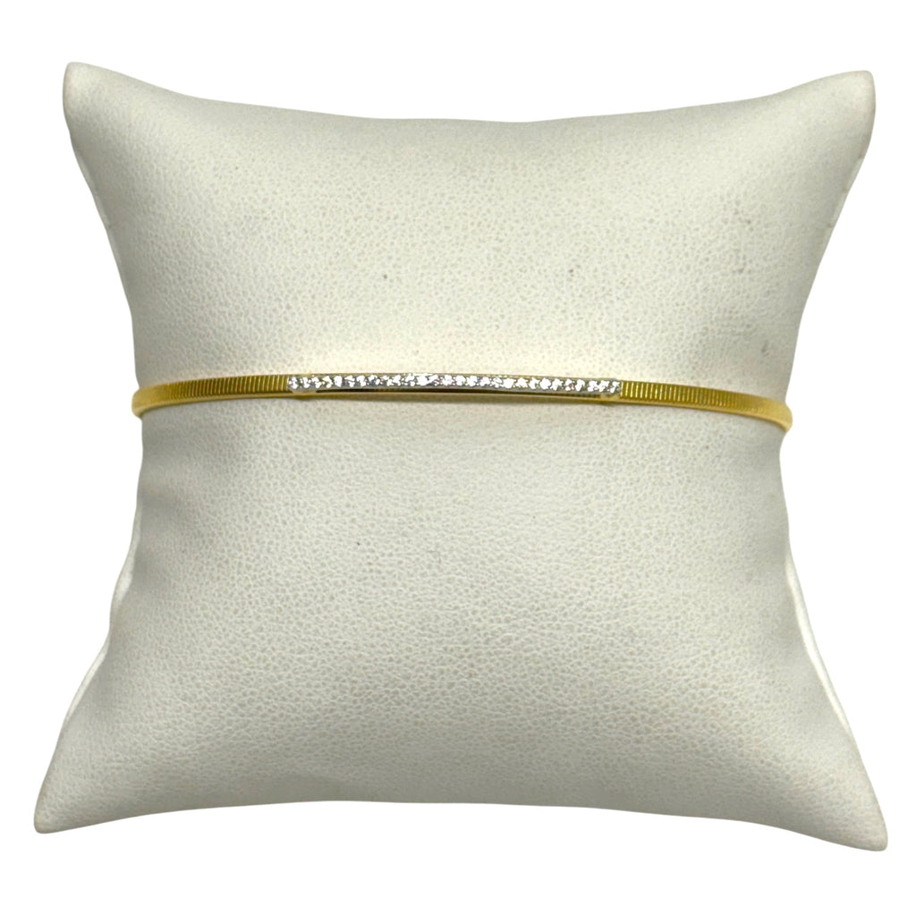 Delicate and elegant 1/8" wide cuff bracelet of textured matte gold with 1 1/8" length of cz on front.