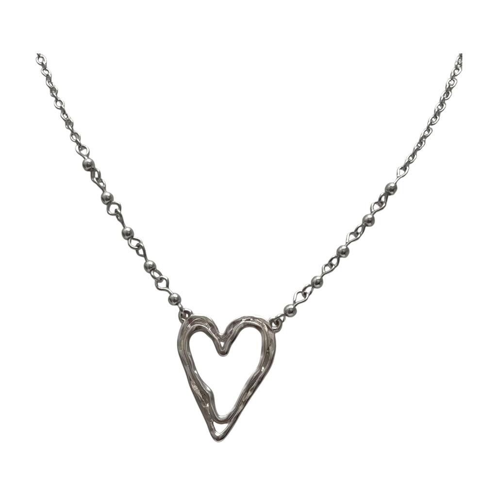 This silver link-and-ball chain necklace features a textured open heart charm.