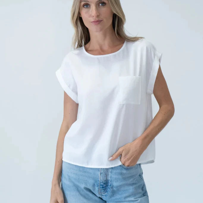 This white top is the perfect spring staple featuring a button design at the back and a pocket at the front. Suitable any weather! For those warmer days, wear it with denim jeans or shorts and a cute sandal.