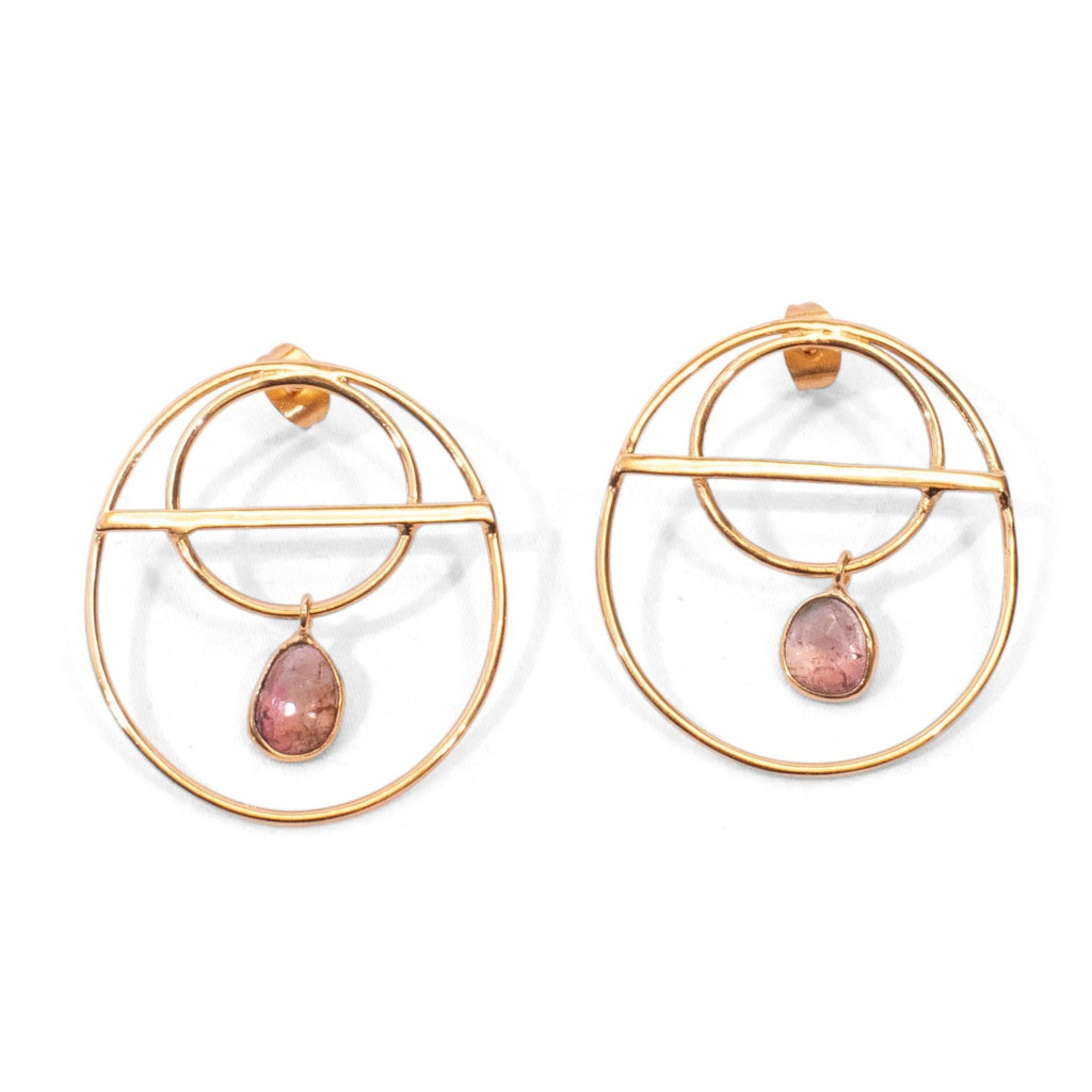 Hoop Studs with Watermelon Tourmaline Drop Charm vary