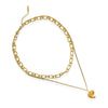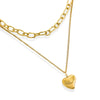 This water resistant necklace features a unique design with a double layer chain and a twisted paperclip chain top. The dainty curb bottom is completed with a delicate heart charm, making it a perfect choice for a sophisticated and exclusive accessory.
