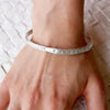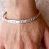 Hand sculpted sterling silver cuff bracelets with your choice of a Hebrew prayer inscribed on it.