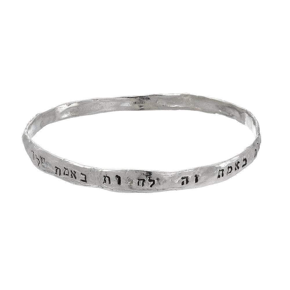 This is a gentle reminder that you can do anything you put your mind to. Keep the Western Wall close to you with this stunning, hand-sculpted bracelet. This hebrew inscription silver bangle is crafted with care and made with texture of a stone imprint from the Western Wall in Jerusalem. Perfect to wear on its own, or to wear with other bangles. Pair it with jeans and a t-shirt, or your favorite little black dress, it will quickly become a classic go-to piece in your jewelry collection.